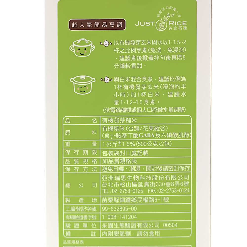 ★以有機發芽玄米與水以1:2杯之比例烹煮(免洗、免浸泡),