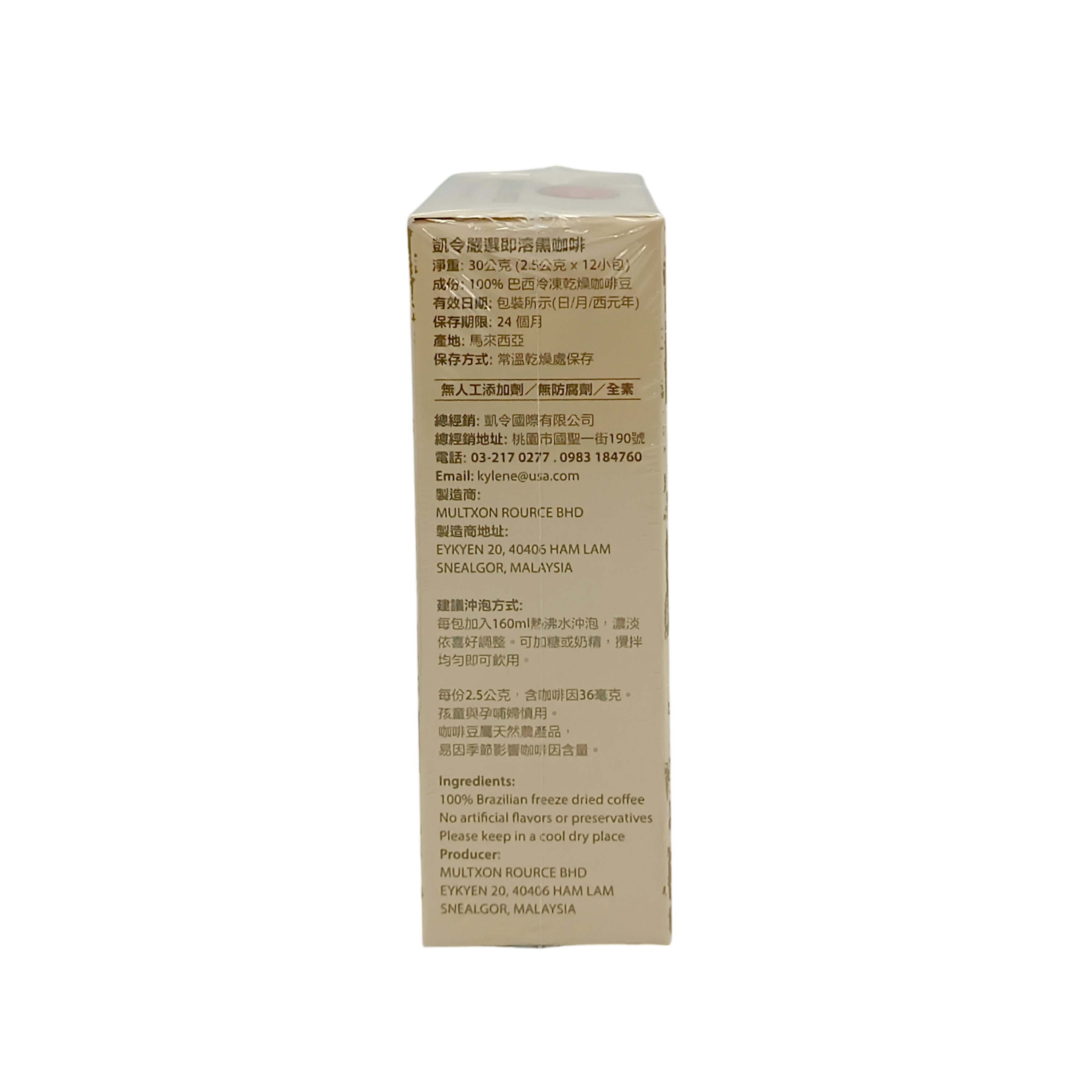 【凱令】即溶黑咖啡(12包/盒)