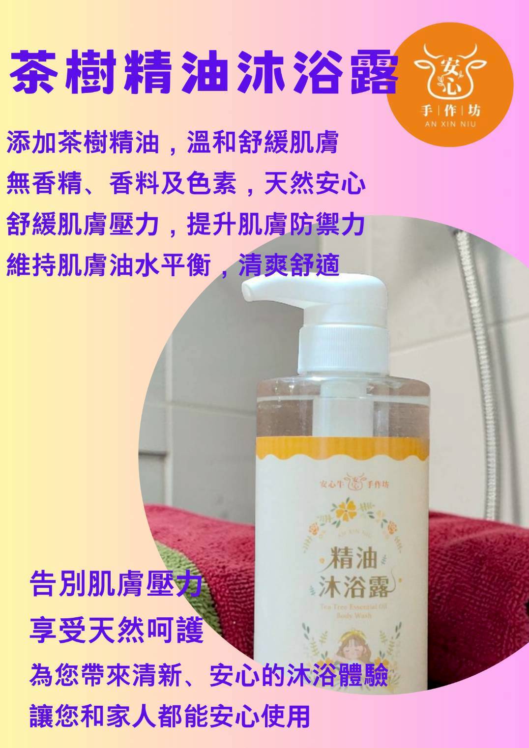 安心牛是來自台南市楠西區的小農,有自己的農場種植澳洲茶樹,並且自行蒸餾成精油,安心牛有研發團隊陸續開發以澳洲茶樹為主題的產品,強調不添加香精、香料、色素等原料,秉持小農的原則,小批量、高質量的生產原則,製作出溫和不刺激的產品,只為了讓愛用者安心使用。