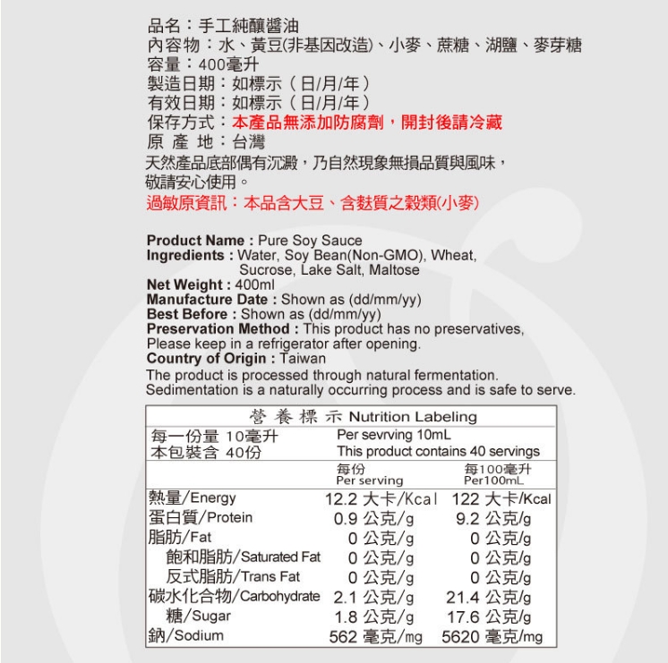 嚴選整顆優質黃豆、小麥基底,獨特直火式工法焙炒,超過210天熟成,完整熟成製麴時間,熟成時間比一般方式更長一倍以上。扎實醞釀出天然黃豆濃郁香甜風味及圓潤鹹甘感。