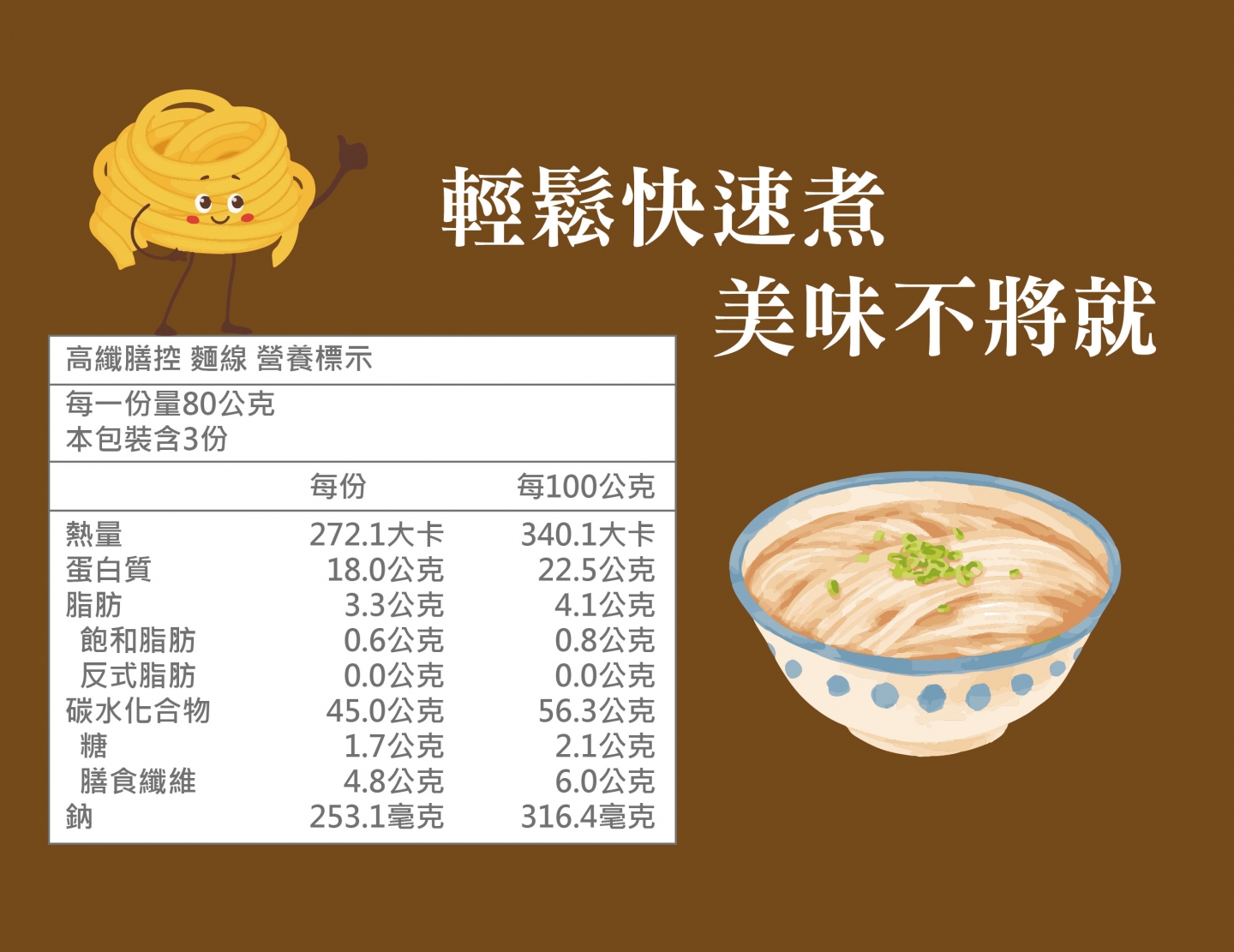 ●淨重:240±10公克(麵條80公克)x3份