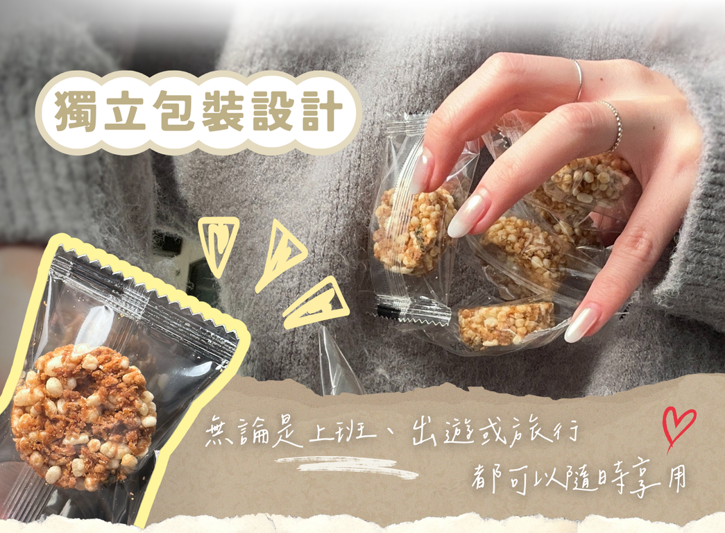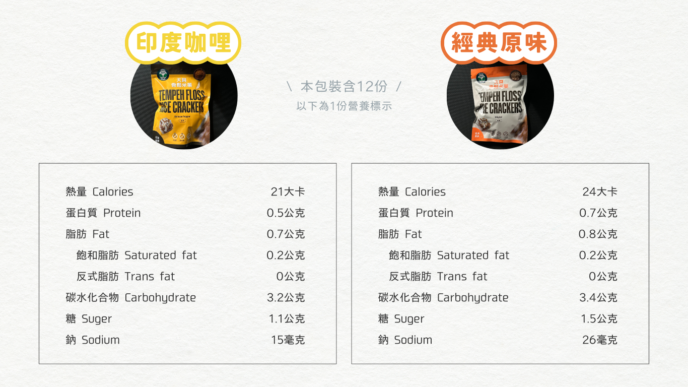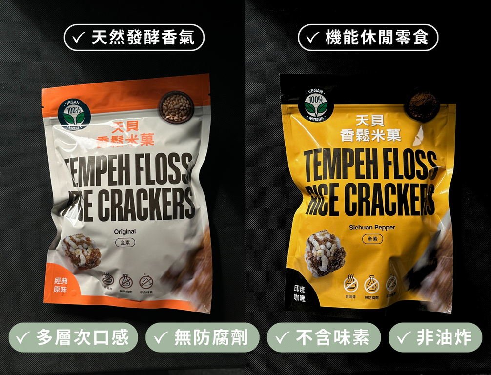 翔鶴佳天貝香鬆米菓,結合天貝香鬆與酥脆米菓,創造濃郁異國風情的健康零食。選用天然發酵天貝,富含植物性蛋白與膳食纖維,搭配印度咖哩香料的獨特風味,辛香濃郁,層次豐富。全程無添加人工色素與防腐劑,健康又安心。酥脆口感與香料的完美結合,適合作為辦公室小點、旅行補給或日常健康零嘴,滿足味蕾同時支持永續飲食理念!